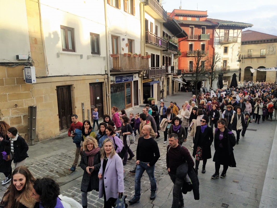 Adin eta errealitate ezberdinetan ditugun beharrak asetzeko beste zaintza sistema bat aldarrikatu dute martxoaren 8an herriko mugimendu feministak antolatutako manifestazio ekitaldian. Hamarnaka herritarrek bat egin dute deialdiarekin.