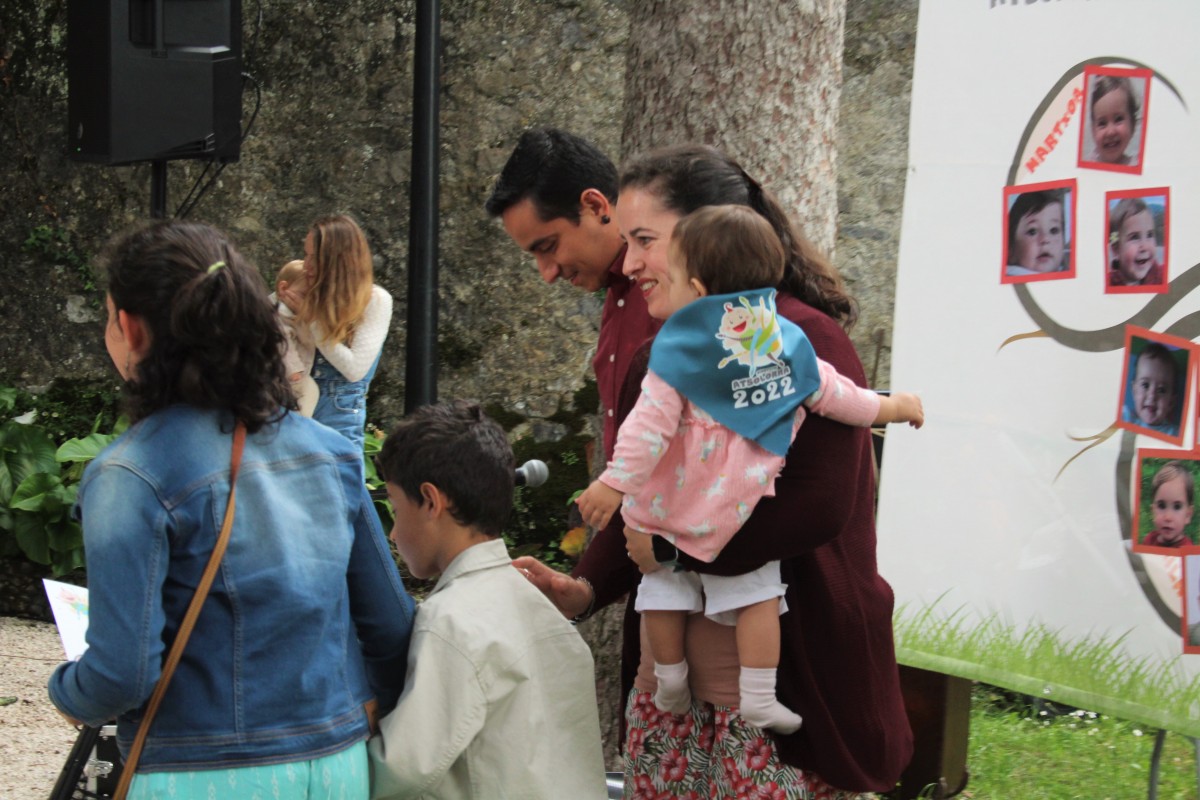 2022an jaiotako oiartzuarrei ongietorria egiteko atsolorra egin zuten atzo goizean Arizmendieneako lorategian. 61 haur jaio ziren joan den urtean Oiartzunen eta 45ek hartu zuten parte ospakizunean.